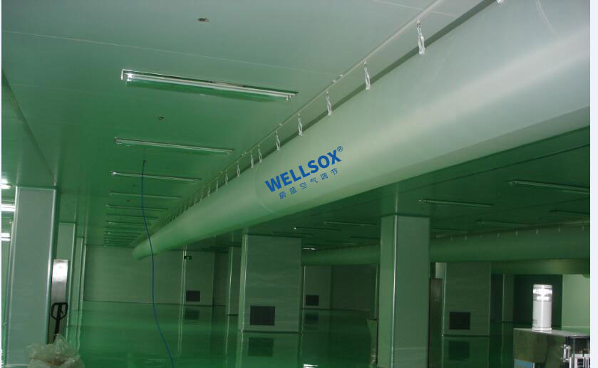 重量极轻:布袋风管重量仅为传统金属风管的1/40,安装时无需大型吊装设备,两人即可完成,大幅缩短工期,尤其适合改造项目。