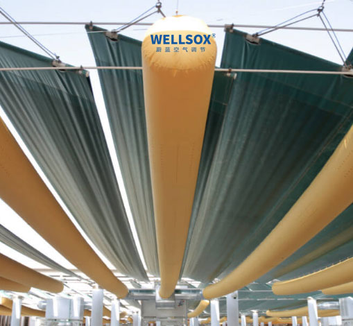 布袋风管广泛应用于纺纱厂的清花、梳棉、并条、粗纱、细纱车间,织布厂的准备、织造车间,以及无纺布生产车间等所有需要高精度环境控制的区域。