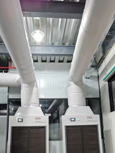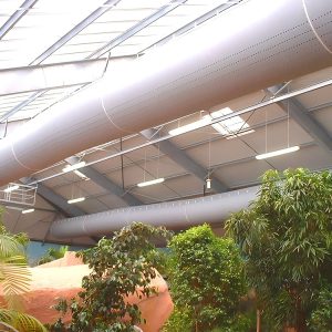 在商场、医院、厂房等场所,布袋风管(纤维织物空气分
